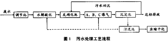 ͨ¹ý¶ÔÉú²ú×°ÖúͷÏˮˮÖʵ÷²é£¬Ñ¡ÓÃǰÖ÷´Ïõ»¯µÄÉúÎïÍѵª¹¤ÒÕ£¬´¦Àí¹¤ÒÕÁ÷³Ì¼ûͼ1¡£