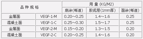 表5.1 VEGF鳞片胶泥使用定量