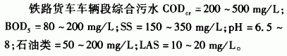 目前,铁路货车车辆段主要处理石油类生产污水,而一些有毒化工污水、洗涤废水、生活污水尚未处理,采用传统的含油污水处理工艺已无法满足环保治理要求。为此,研究货车车辆段综合污水处理技术已成为当今铁路环保行业关注的课题。