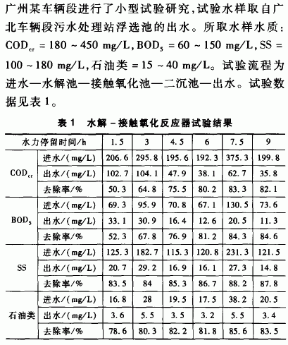 通过对综合污水水解一接触氧化工艺的小试,摸索出适合铁路货车车辆段综合污水特性的新型处理工艺,但尚需对水解一接触氧化反应器内部水力混合条件和传质条件深入研究,以进一步提高处理效果,以使水解一接触好氧工艺得到广泛的应用。