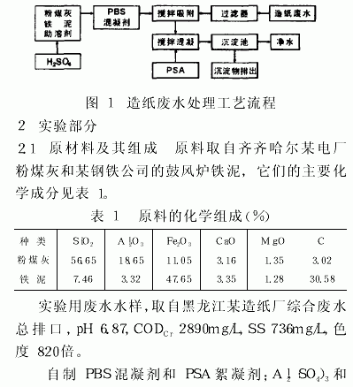 ÀûÓÃPBS»ìÄý¼ÁÓëPSAÅäºÏʹÓ㬶ÔÔìÖ½·ÏË®½øÐд¦Àí¡£´¦Àí¹¤ÒÕÁ÷³Ì£¬¼ûͼ1¡£