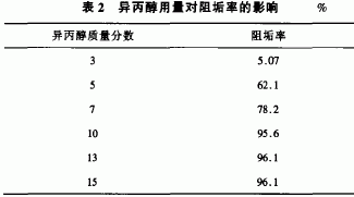 异丙醇用量对阻垢率的影响见表2。