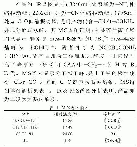 利用显微熔点仪测定产品DBNPA的熔点为123-125℃,与国外有关报道一致。