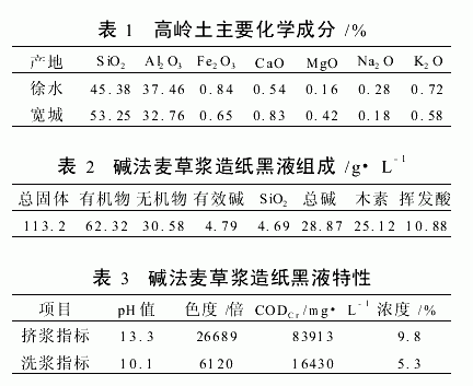 造纸黑液:石家庄某造纸厂碱法麦浆造纸黑液,其化学组成和特性见表2和表3。