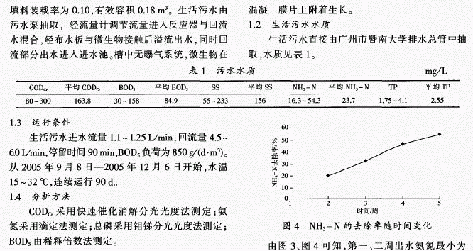 低成本生物膜法处理城市污水试验研究 西门观止 / 2016-12-31 浏览 对利用低成本混凝土膜片上附着生长的生物膜处理城市污水进行了实验研究,初步探讨了其除污机理。连续稳定运行90d,进水CODcr为80~300mg/L,BOD5为30~158mg/L,NH3一N为16.3~54.3mg/L,TP的质量浓度 为1.75~4.1mg/L,该系统对COD∽BOD5、NH3一N和TP的去除率分别达到76.0%、94.9%、54.1%和31.8%,对有机物处理效果稳定,抗冲击负荷能力较强,出水水质稳定。 阅读全文