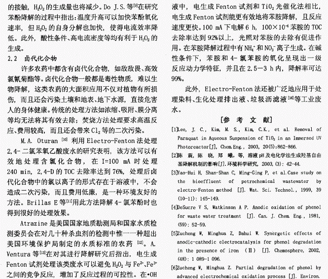 电生成Fenton试剂在废水处理中的应用 西门观止 / 2017-01-01 浏览 介绍了电生成Fenton试剂的反应机理及其在各类废水处理中的应用。研究发现,电生成Fenton试剂对各类废水都具有良好的处理效果,是一种优良的废水处理新技术。 阅读全文