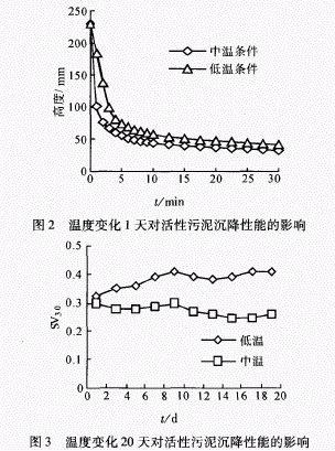 2.1.2温度变化对活性污泥沉降性能的影响对比中温活性污泥在常温和低温环境条件下的沉降性能,得出的试验结果分别如图2、图3所示: