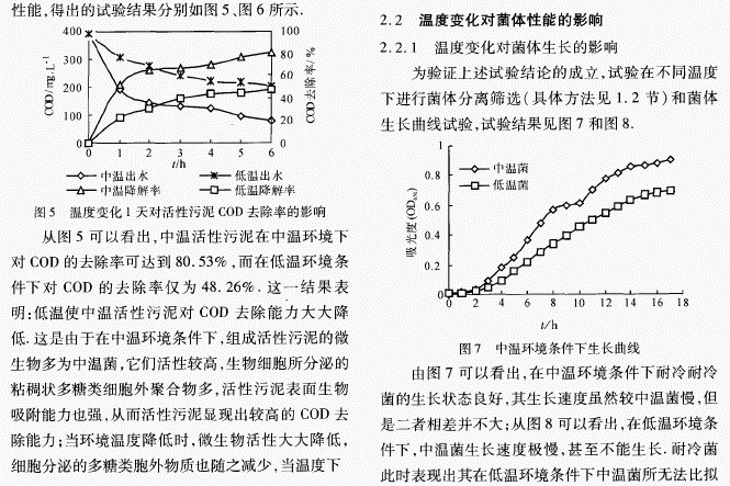 1)实验水质:低温生活污水取自冬季哈尔滨工业大学家属区:pH=7.67~8.09.COD=248.3~692.2mg/L