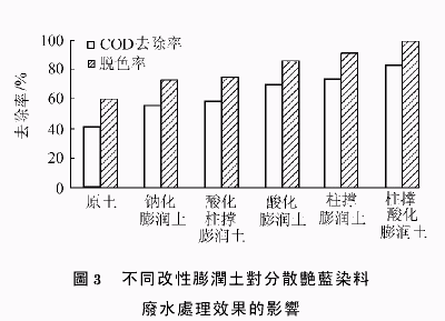 2.2 不同改性膨潤土對分散艷藍染料廢水處理效果的影響