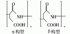 聚天冬氨酸(Polyasparticacid简称PASP)是聚氨基酸中的一类,由美国Donlar公司20世纪90年代初开发的一种新型水处理剂,它主要包括聚天冬氨酸及其钠盐和酯[15,16]。PASP分子链中包含α和β两种结构: