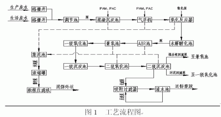 (一)混凝沉淀法。混凝沉淀法,是通过投加混凝剂使水中难以自然沉淀的胶体物质以及细小的悬浮物聚集成较大的颗粒,使之能与水分离的过程。在适宜的温度、PH值及碱度条件下,混凝沉淀通过以下机理可有效分解高分子有机物。1、电性中和:通过投加电解质压缩扩散层以导致胶粒之间互相凝聚;或通过投加异号离子与校核表面的静电吸附,中和了胶体原来所带电荷从而降低了胶体的ζ电位而使胶体脱稳。2、吸附桥架:利用高分子混凝剂松散的网状长联式结构的大覆盖面积,通过氢键、共价键及范德华力等作用与胶粒表面吸附。3、卷扫(网捕):以铝盐和铁盐为混凝剂时,所产生的沉淀物能够以卷扫(网捕)形式,使水中的胶体微粒一起下沉。通过运行监测,该段的COD去除率最高时可达到35%,BOD/COD<0.45。