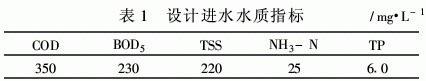 某城市排放废污水的主要污染源为城市居民生活污水和当地工业、企业的废水。排入城市污水处理厂的废水中主要的污染物为COD、BOD、SS、TP。根据污水水质实际检测结果,综合考虑地形、气候等各种因素及未来人民生活水平的提高,并参考国内运行的典型污水厂实际进水水质指标,确定该城市污水处理厂的设计进水水质指标见表1。