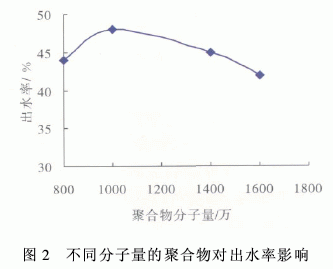 从图2可以看出,分子量为1000万的聚合物出水率比较高。