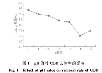 ÓÉͼ1¿É¼û£¬pHÖµ¶ÔӡȾ·ÏË®µÄCODÈ¥³ýÂÊÓÐÏÔÖøµÄÓ°Ïì¡£µ±pHֵΪ3ʱ£¬½µ½âЧ¹û½ÏºÃ£¬CODÈ¥³ýÂÊΪ94%£»µ±pHֵΪ8ʱ£¬CODÈ¥³ýÂʽöΪԼ70%£»µ±pHֵΪ9ʱ£¬CODÈ¥³ýÂÊÓÖÓÐËùÉÏÉý¡£ÕâÊÇÒòΪÔÚUV/O3¹¤ÒÕÖУ¬·´Ó¦Îª×ÔÓÉ»ùÐÍ£¬Ëæ×ÅÑõ»¯¹ý³ÌµÄ½øÐУ¬Óлú̼²»¶Ï±»½µ½âΪÎÞ»ú̼£¬ÔÚËáÐÔ»·¾³ÖУ¬ÎÞ»ú̼ÒÔCO2µÄÐÎʽÒݳö£»¶øÔÚ¼îÐÔ»·¾³ÖÐÔòÊÇÒÔHCO-3»òCO2-3µÄÐÎʽ´æÔÚÓÚÈÜÒºÖУ¬ÓÉÓÚÕâÁ½ÖÖÀë×Ó¶¼ÊǺÜÇ¿µÄ.OH×ÔÓÉ»ùÇå³ý¼Á£¬Òò´Ë½µµÍÁË.OH×ÔÓÉ»ùµÄŨ¶È£¬¼´½µµÍÁËÑõ»¯ÄÜÁ¦£»µ«µ±pHֵΪ9ʱ£¬ÓÐÀûÓÚO3·Ö½â²úÉú.OH×ÔÓÉ»ù£¬Òò´Ë£¬CODÈ¥³ýÂÊÓÐËùÉÏÉý¡£×ۺϿ¼ÂÇ£¬Ñ¡ÔñÊÊÒ˵ÄpHֵΪ5¡£