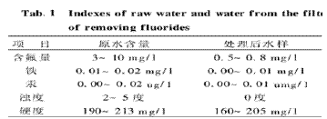 经处理后,含氟量符合国家规定的饮用水标准(F≤1 mg/L)。同时,估算处理费用为每立方米≤0.5元。