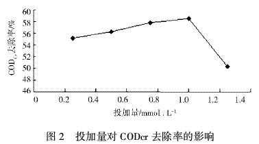 3.3投加量对CODcr去除率的影响