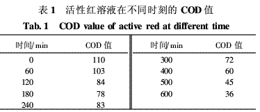 由公式n=(COD0-COD)/COD0×100%计算COD去除率。COD0和COD分别为原溶液和一定时间所取样品的COD值。