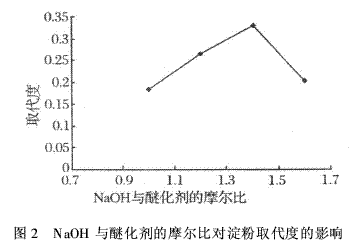 3.2 氢氧化钠与醚化剂的摩尔比对淀粉取代度的影响