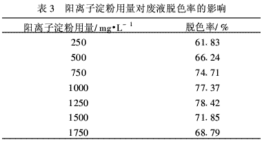 2.4 阳离子淀粉对酒精废液絮凝脱色性能测定