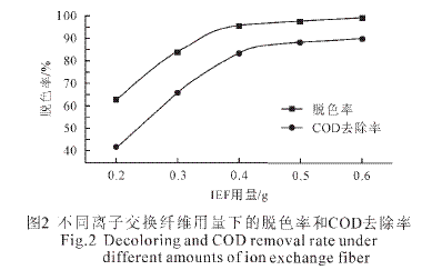 2.1.2离子交换纤维用量对废水处理效果的影响