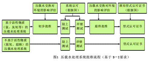 根据公约的要求,压载水管理系统必须得到船旗国主管机关签发的型式认可证书,如图1所示,以确认其符合公约D-2规则中压载水排放标准。在处理过程中产生和使用活性物质的压载水管理系统还必须得到IMO的批准。IMO对使用活性物质的压载水管理系统的审议过程遵照压载水公约导则——《使用活性物质的压载水管理系统批准程序导则》(G9),批准过程包括初步批准和最终批准。