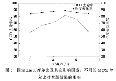 (2)用锌、镁和聚硅酸合成的聚硅酸锌镁,处理效果比较理想,色度去除率高达80%。