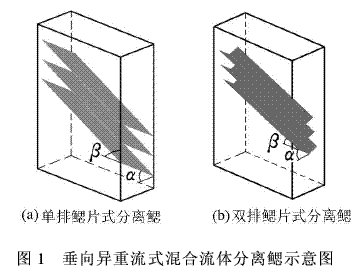 ±ÊÕßÊÔÑéÑÐÖÆÁË2ÖÖ²»Í¬ÈúƬÀàÐ͵Ĵ¹ÏòÒìÖØÁ÷ʽˮɳ·ÖÀëÈú£¬·Ö±ðΪµ¥ÅÅÈúƬʽºÍË«ÅÅÈúƬʽ(ͼ1)¡£ÊÔÑé×°ÖÃΪ¾ØÐιÜ×´Èú£¬ÓÉÈú¹Ü¡¢ÈúƬ¹¹³É¡£µ¥ÅÅÈúƬʽ·ÖÀëÈúÈúÆ¬ÎªÒ»Æ½Ãæ£¬ÒÔÒ»¶¨µÄ½Ç¶È¦ÁÇãб¹Ì¶¨ÔÚ¾ØÐÎÈú¹Ü³¤·½ÏòµÄÁ½²à±ÚÉÏ£¬ÓëÈú¹ÜµÄ¿í¶È²à±Ú¹¹³É¦ÂÇãб½Ç£¬µ«Óë¿í¶È·½ÏòµÄÁ½²à±ÚÖ®¼ä±£³ÖÒ»¶¨µÄ¾àÀ룬¼´ÈúƬÓë¹Ü±ÚÖ®¼ä¹¹³ÉÇåË®ÉÏÉýºÍÄàɳϽµµÄͨµÀ¡£Êµ¼ÊÓ¦ÓÃʱ£¬¿í¶È·½ÏòµÄ²à±Ú·Ö²¼ÓÐÍøÑÛ£¬Èú¹ÜÉÏ϶ÎΪ¿ª¿Ú×´¡£Ë«ÅÅÈúƬʽ·ÖÀëÈúÓëµ¥ÅÅÈúƬʽ·ÖÀëÈúÀàËÆ£¬Ò²ÓÉÈú¹Ü¡¢ÈúƬ¹¹³É¡£Ëù²»Í¬µÄÊÇÈúƬ³Ê¡°V"×ÖÐΣ¬ÓëÈú¹ÜµÄÁ¬½ÓÐÎʽͬµ¥ÅÅÈúƬ·ÖÀëÈú¡£