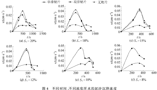 Õû¸ö³Á½µÊÔÑé³ÊÏÖ³öÄàɳº¬Á¿Ô½¸ßÔò³Á½µËÙ¶ÈԽС¡¢³Á½µÊ±¼äÔ½³¤µÄÇ÷ÊÆ£¬µ«×ÜÌåÉÏÀ´¿´£¬ÎÞÂÛÄàɳº¬Á¿ÈçºÎ±ä»¯£¬·ÖÀëÈúÖÐÄàɳ³Á½µËٶȵķåÖµ¶¼ÊÇÆÕͨ¹ÜÖеÄ3±¶×óÓÒ¡£