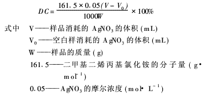 1.3.2 接枝共聚物阳离子度(DC)的测定测定原理:壳聚糖的三元接枝共聚物中含有Cl-的单元结构,参照摩尔法可测定Cl-的含量来表示接枝产物中二甲基二烯丙基氯化铵的含量。