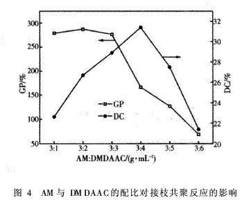 2.1.4 AM与DMDAAC配比对接枝共聚反应的影响