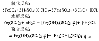 硫酸亚铁在酸性溶液中,在氧化剂的作用下,被氧化而后经水解、聚合得到聚合硫酸铁.