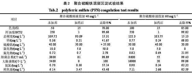 由表2混凝沉淀的试验结果表明:
