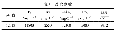 中段废水取自四川某造纸厂,其污染负荷如表1所示。聚合氯化铝(PAC)、阳离子聚丙烯酰胺(CPAM)、硅藻土、CHPTAC为市售工业化产品。硝皮屑取自四川制革厂。