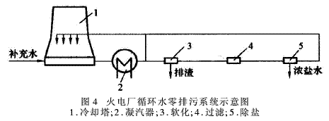 上述系统的软化处理可根据情况选用化学软化;过滤部分可采用微滤或超滤技术,除盐部分可采用反渗透技术。采用上述系统,只是产生水处理设备自用排污水量,整个循环系统本身运行无需再进行排污操作,故称为“零排污"。
