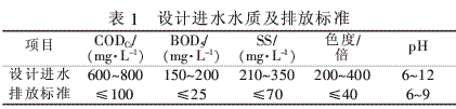 (3)废水的BOD5/CODCr偏低,可生化性差。设计进水水质及排放标准如表1所示。