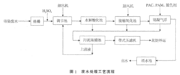 采用该工艺处理印染废水需选择性能优良的混凝剂,以降低废水的色度及悬浮性有机物含量,保证出水的各项指标达到排放标准要求。