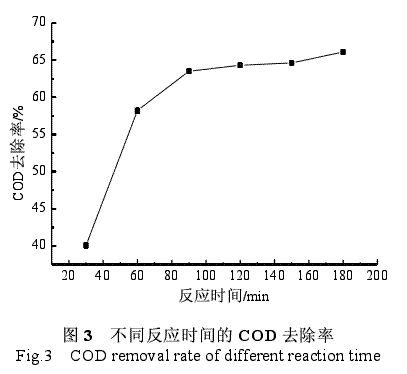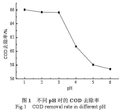 pH降到3以下时,COD去除率增加得相当缓慢。因此从经济性方面考虑,最佳反应pH为3。