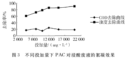 3.2 絮凝剂PAC对毛皮浸酸废水的处理效果