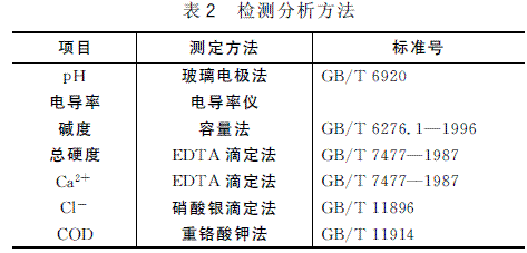 系统稳定运行后,每天取样2~3次,每次取样500~800mL进行检测,分析方法见表2。
