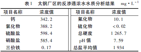 太原钢铁集团有限公司是以生产板材为主的特大型钢铁联合企业和全球最大的不锈钢生产企业。目前太钢厂区废水年排放量为990万m3,年排放总盐量为1914.66万t,其水质分析数据见表1。采用“预处理+膜处理+浓缩蒸发结晶"的工艺方案,将这部分浓盐水收集并进行处理,达到全厂废水零排放的目标。