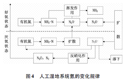 人工湿地对氮的去除主要是通过基质、植物和微生物的共同作用来完成。基质通过一些物理和化学的途径(如吸附、过滤、离子交换、络合作用等)来净化水中氮、磷等物质。