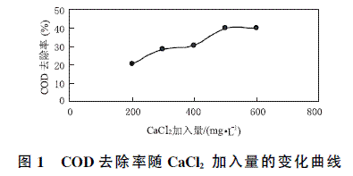当CaCl2的投加量为500mg/L时,PAC投加量影响COD去除率的变化曲线如图2所示。