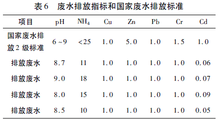 经过絮凝剂处理后的废水用活性炭过滤器分离其固液成分,过滤后的废水经过检测分析其指标,具体指标见表4,重金属含量以mg/L计量。