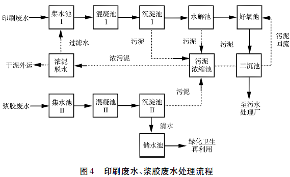 由于浆胶废水与印刷废水水量和污染物浓度差异都很大,应考虑分开处理。