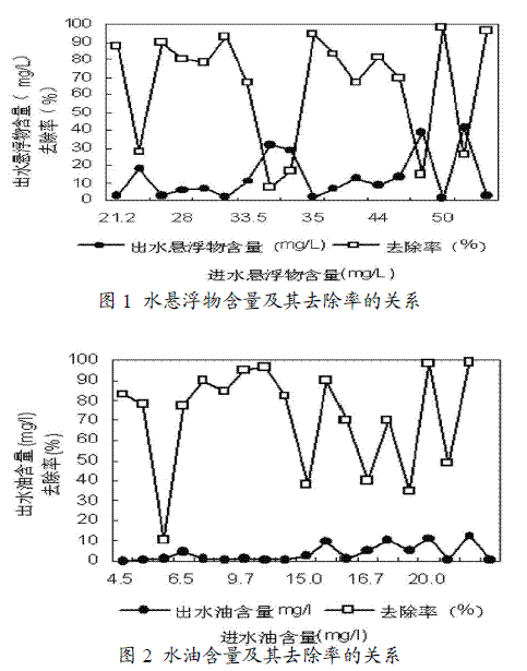 (1)活性炭和滤膜吸附可有效去除污水中的油脂,去除率可达100%,特别是去除洗舱水中的乳化油;核桃壳作为过滤介质,在处理洗舱油污水的过程中,出水悬浮物去除率达到70%以上,在适宜的运行条件下去除率可高达98%;出水含油量可以保持在15mg/L以下,去油率在80%左右,在适宜的运行条件下去除率可高达99%。