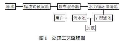 方案比选分析:磴口县以黄河水为水源,典型的高浊度水,辐流式预沉池可以处理高浊度水,对水进行初步的处理,减小以后工艺的处理负担,水力循环澄清池适用于中小水厂,处理进水浊度小于2000度,符合此次设计要求,此次设计水源没有受到污染,故不必做深度处理,V型滤池采用气水混合反冲和表面冲洗,冲洗效果好,自动化程度高。预沉池的建造首先考虑利用现有的低洼地,湖泊,河道等加以改造,出水后送水厂进行常规处理,根据方案比选分析,选用方案二,工艺合理,造价适中,符合中国国情。处理工艺流程图见图1。