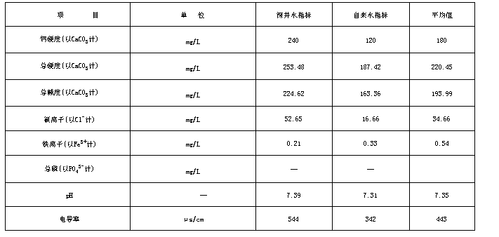 备注:平均值为深井水与自来水1:1混合。