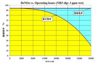 1、催化剂随着运行时间的的延长,其活性会不断降低。目前相关文献给出的主要原因为:催化剂中毒,积碳和积灰,催化剂烧结,其表面形成水合物,活性组分流失以及机械磨损等。一般过了设计寿命期,其脱销效率会快速下降。单台100万千瓦机组更换一层的费用为1000万/年。