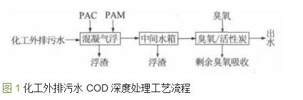 采用混凝气浮—臭氧/活性炭组合工艺能将COD在60~100mg/L的化工外排污水COD稳定地去除50%~80%,出水COD≤35mg/L,使出水稳定达到《污水综合排放标准》(GB/T8978—1996)的一级排放标准要求。