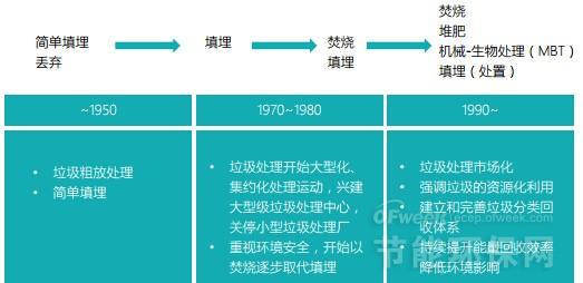 从德日等国的固废处理技术创新曲线可以看出,发达国家的垃圾管理和技术创新已经走过了一条酝酿、起步、爆发、稳定的生命曲线。实际上,就具体工艺路线而言,世界各国的处理技术大体都是伴随着填埋、焚烧、堆肥三大处理路线的此消彼长、利弊权衡中不断发展的。
